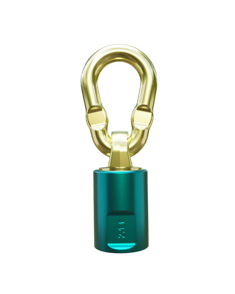 Eslabón giratorio TP-F con rosca interior y rodamiento de bolas. La función de engarce en el eslabón evita que se doble.