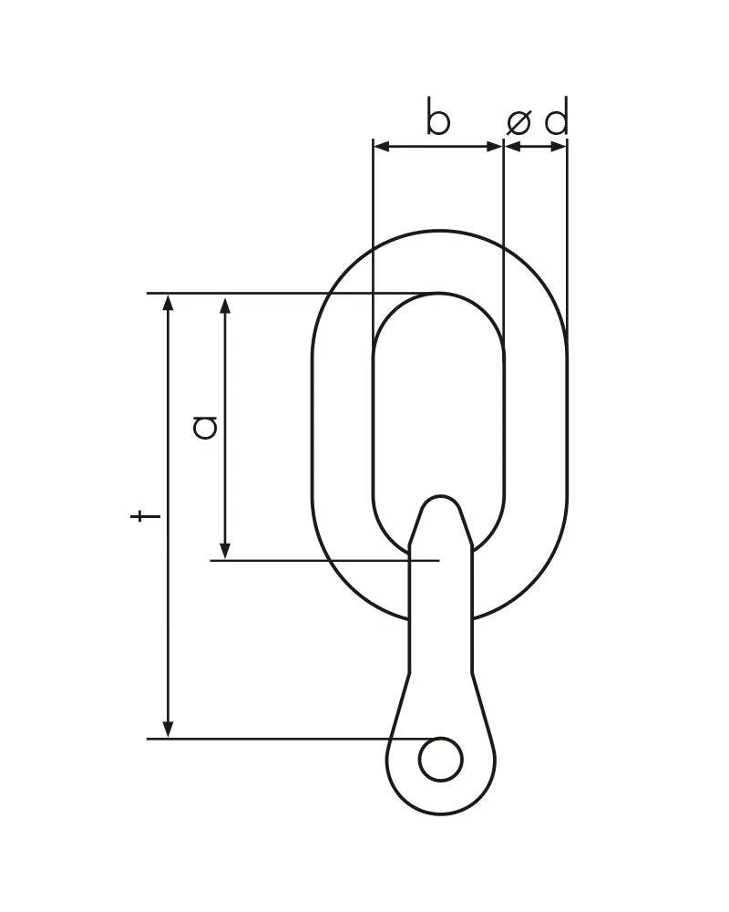 Eslabón de unión NORM8 con conector de horquilla de Grado 8 para eslingas de cadena de un ramal según la norma EN 818-4.