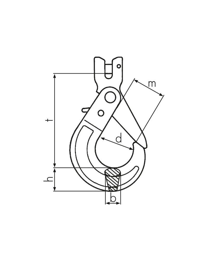 El gancho automático para eslinga de horquilla NORM8 TAHG, según la norma EN 1677-3, puede adaptarse a diferentes direcciones de carga. El diseño del gancho evita su rotura brusca en caso de sobrecarga.